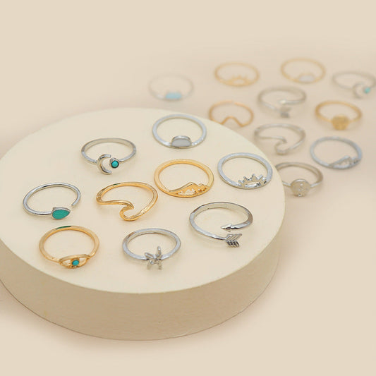 Ensemble Éblouissant de 10 Bagues Bohèmes en Argent et Or