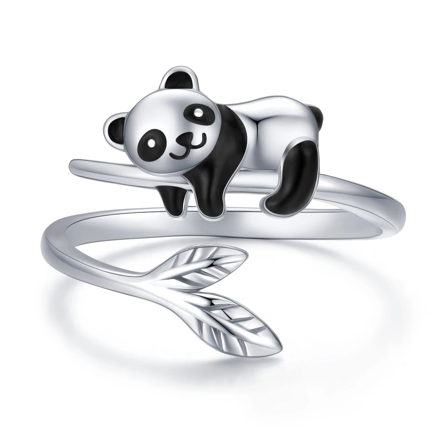 Adorable Bague Ajustable en Argent Sterling 925 avec Motif de Panda